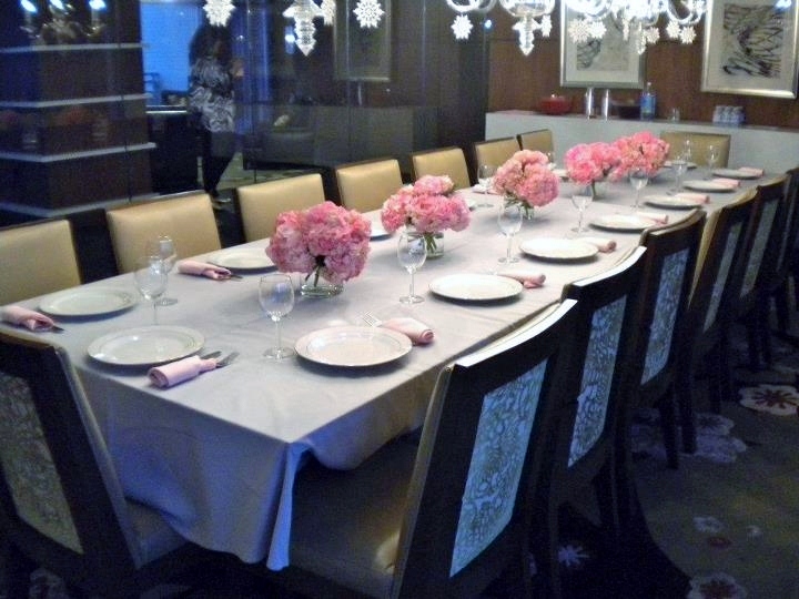 tricky business – white hydrangeas skillfully dyed pink saves about $28 per centerpiece over naturally colored pink hydrangea!