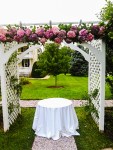 - $667 pergola, floral garland and chandelier