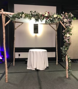 - $389 ceremony rental arch (included) draping florals
