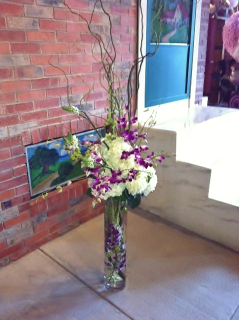 submerged orchid & hydrangea ceremony or altar arrangement
